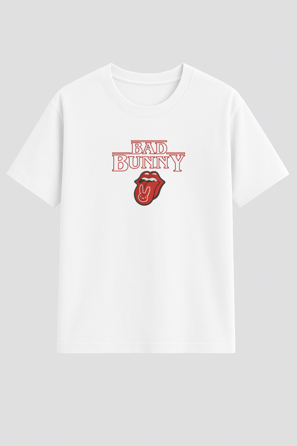 Kvalitní bavlněné tričko s precizní výšivkou textu "BAD BUNNY". Výšivka je provedena strojově s důrazem na detail a dlouhou životnost.