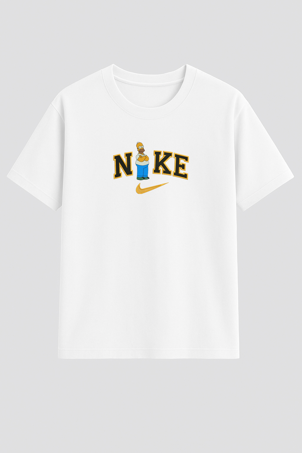 Kvalitní bavlněné tričko s precizní výšivkou Homera Simpsona v kombinaci s logem Nike. Výšivka je provedena strojově s důrazem na detail a dlouhou životnost.