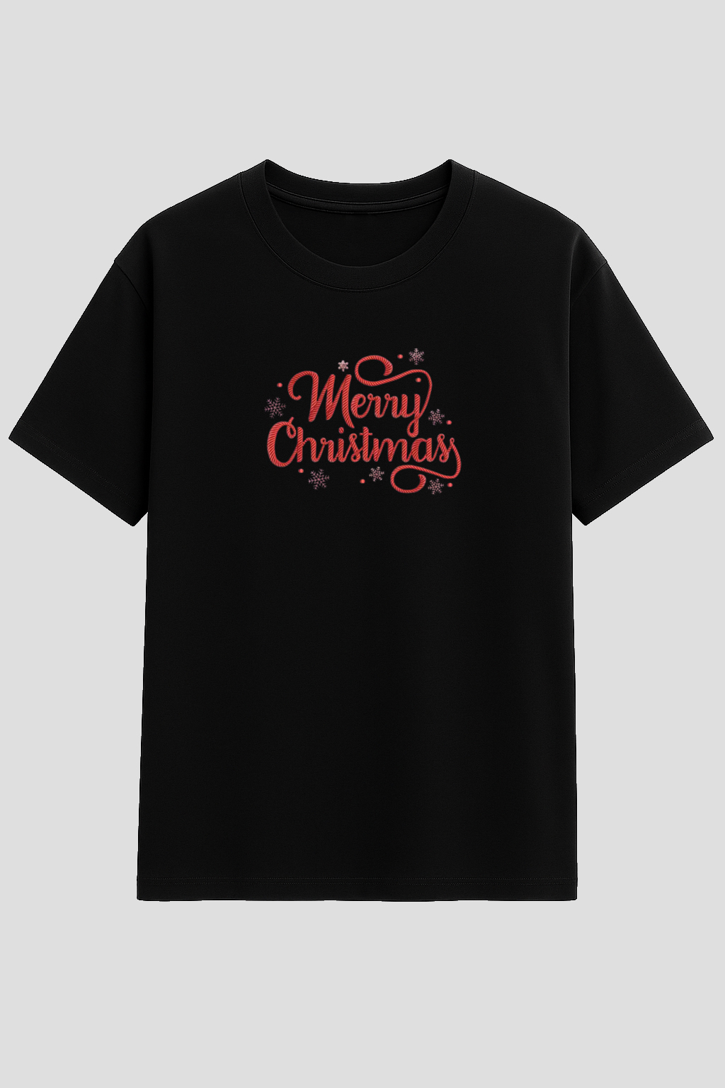 Kvalitní bavlněné tričko s precizní výšivkou nápisu "Merry Christmas". Výšivka je provedena strojově s důrazem na detail a dlouhou životnost.