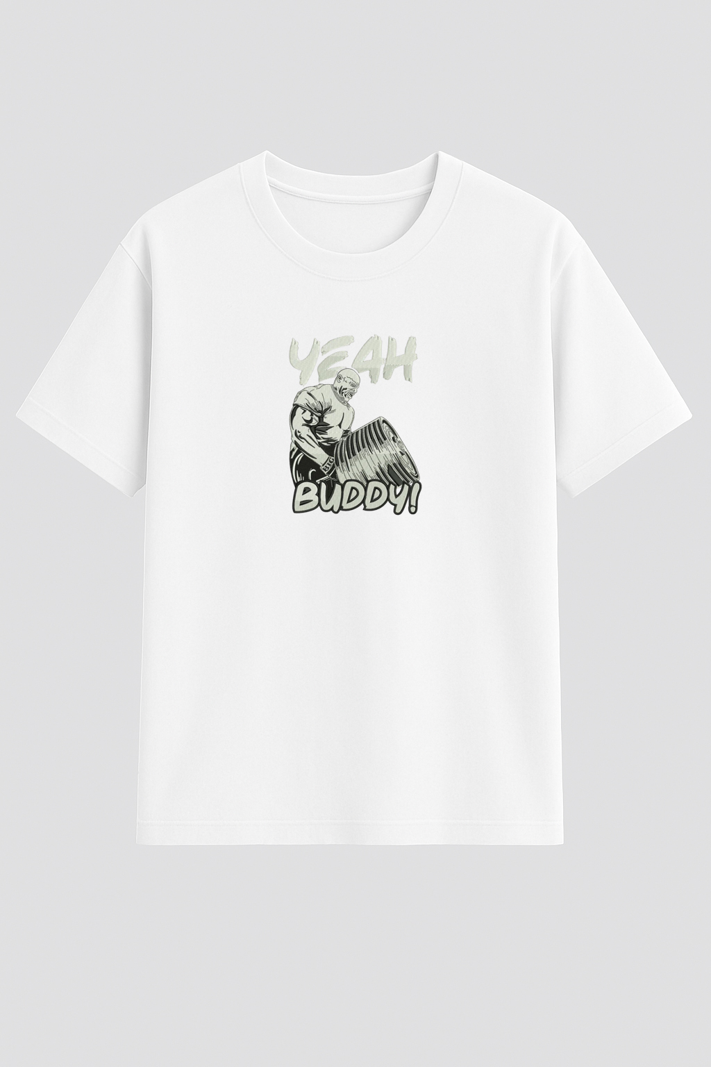 Kvalitní bavlněné tričko s precizní výšivkou svalnatého muže v kombinaci s nápisem "YEAH BUDDY!". Výšivka je provedena strojově s důrazem na detail a dlouhou životnost.
